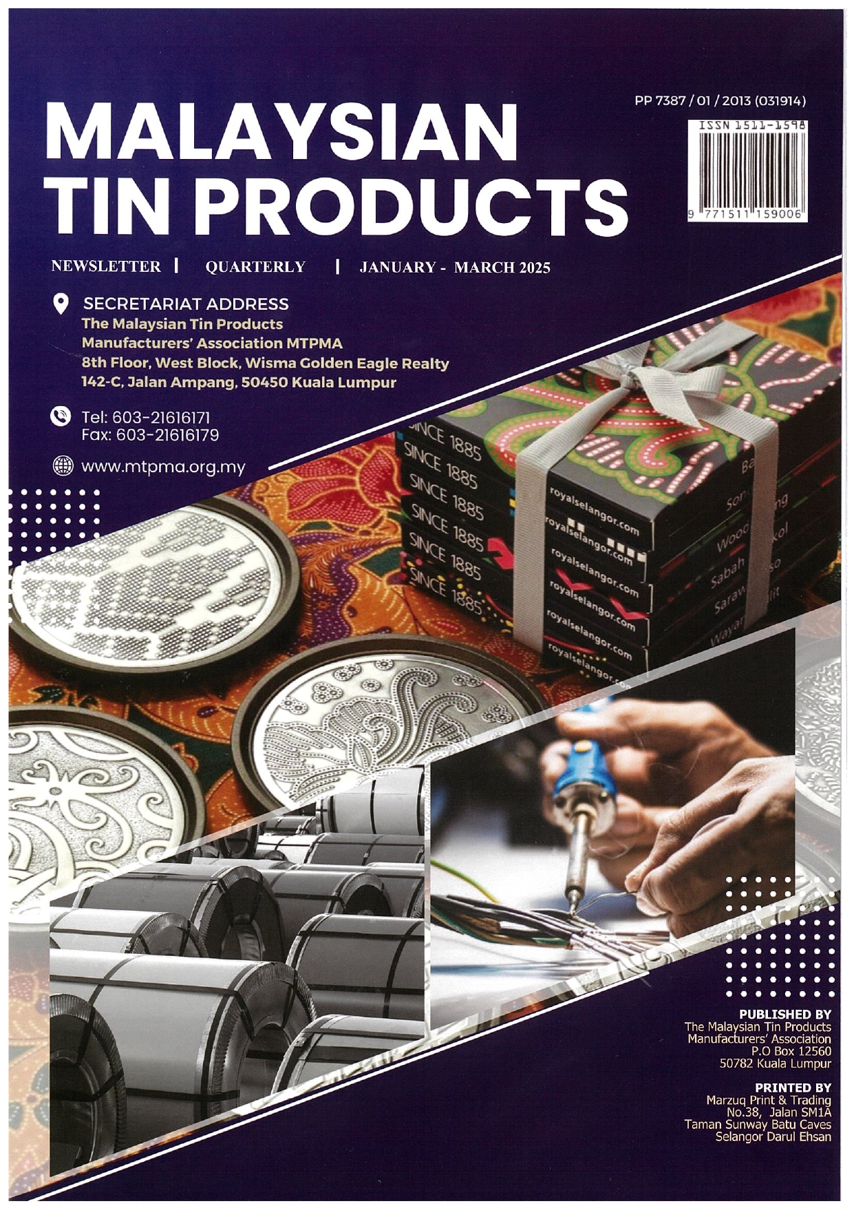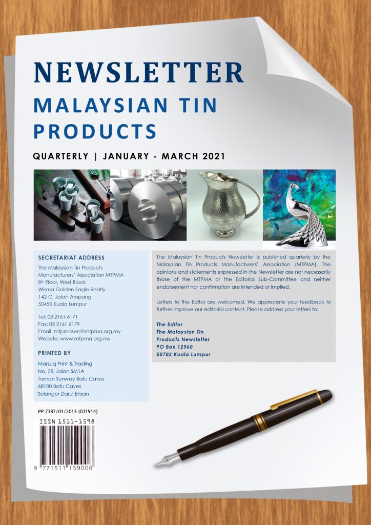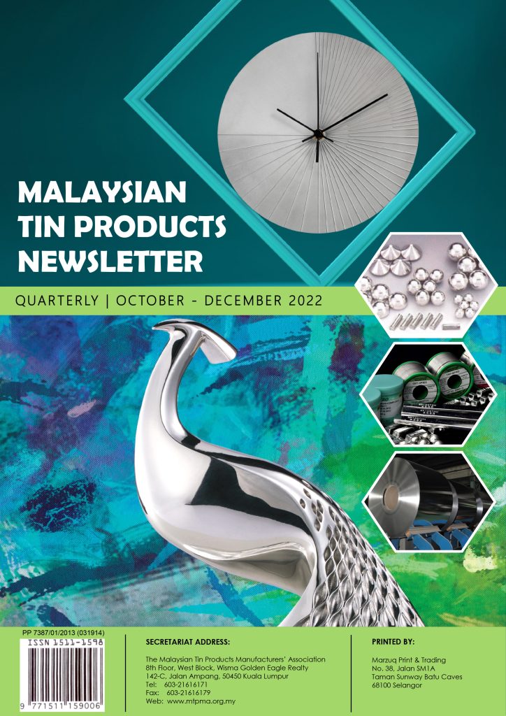 Those interested to subscribe to the quarterly Malaysian Tin Products Newsletter can enquire from the Association’s Secretariat.